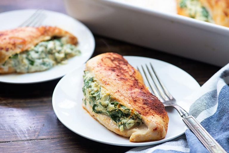Piept de pui umplut cu branza si spanac