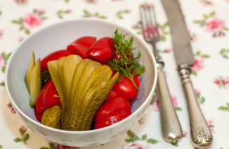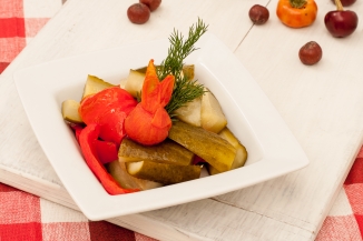 Ingrediente /portie: castraveti murati (65%) (contin: castraveti, otet, sare, condimente, conservant:acid benzoic, indulcitor: zaharina sodica), gogosari murati (35%) (contin: gogosari, apa, sare, otet din alcool, indulcitor:zaharina)